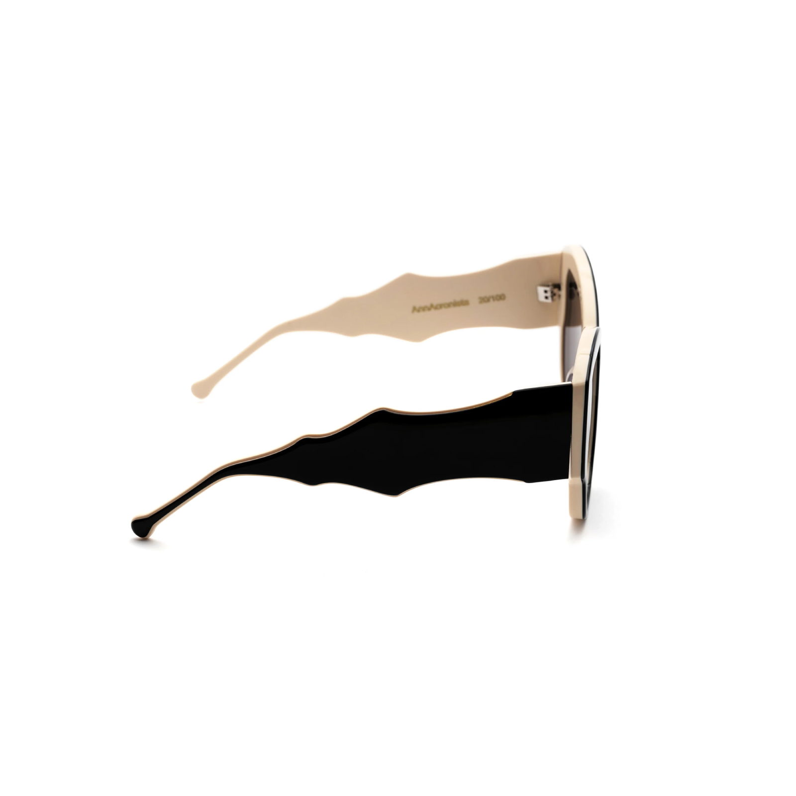 Occhiale in acetato nero e bianco dalla forma unica ed edizione limitata 99/100