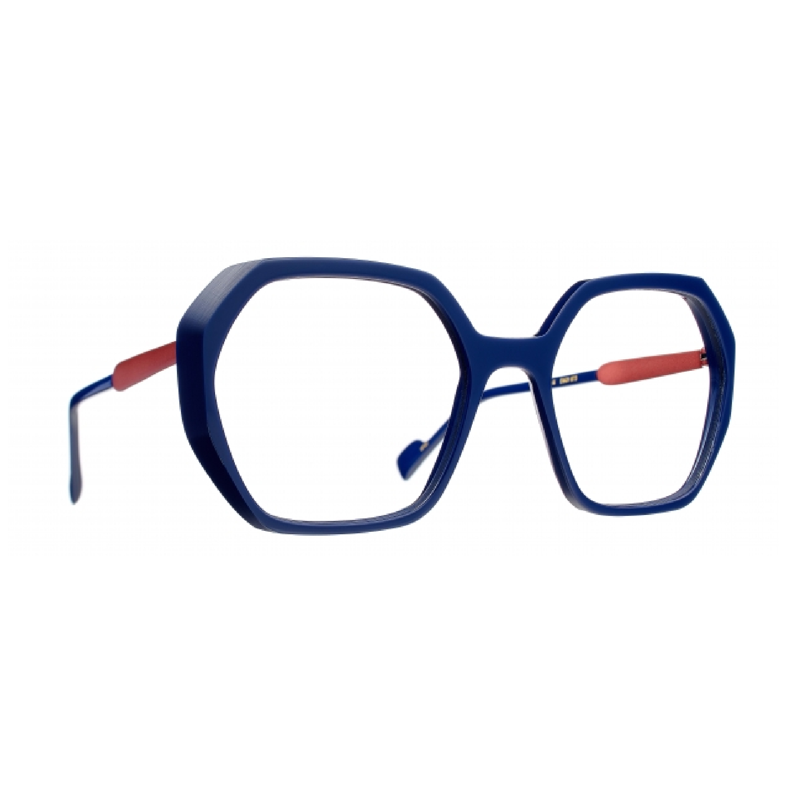 Occhiale in acetato viola sfaccettato con aste bicolore cello/metallo