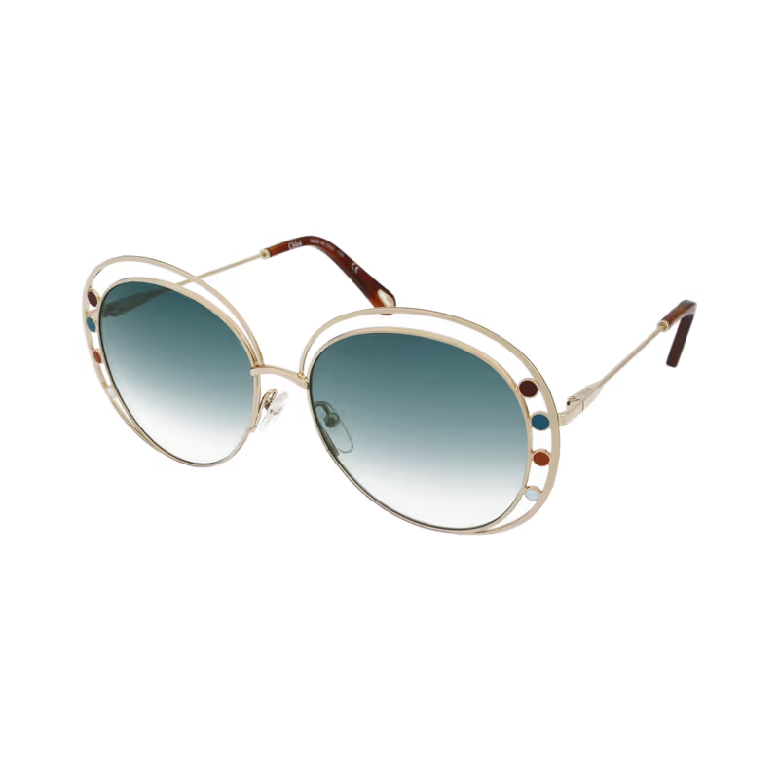 Occhiale in metallo a goccia tondeggiante con lenti azzurro sfumato