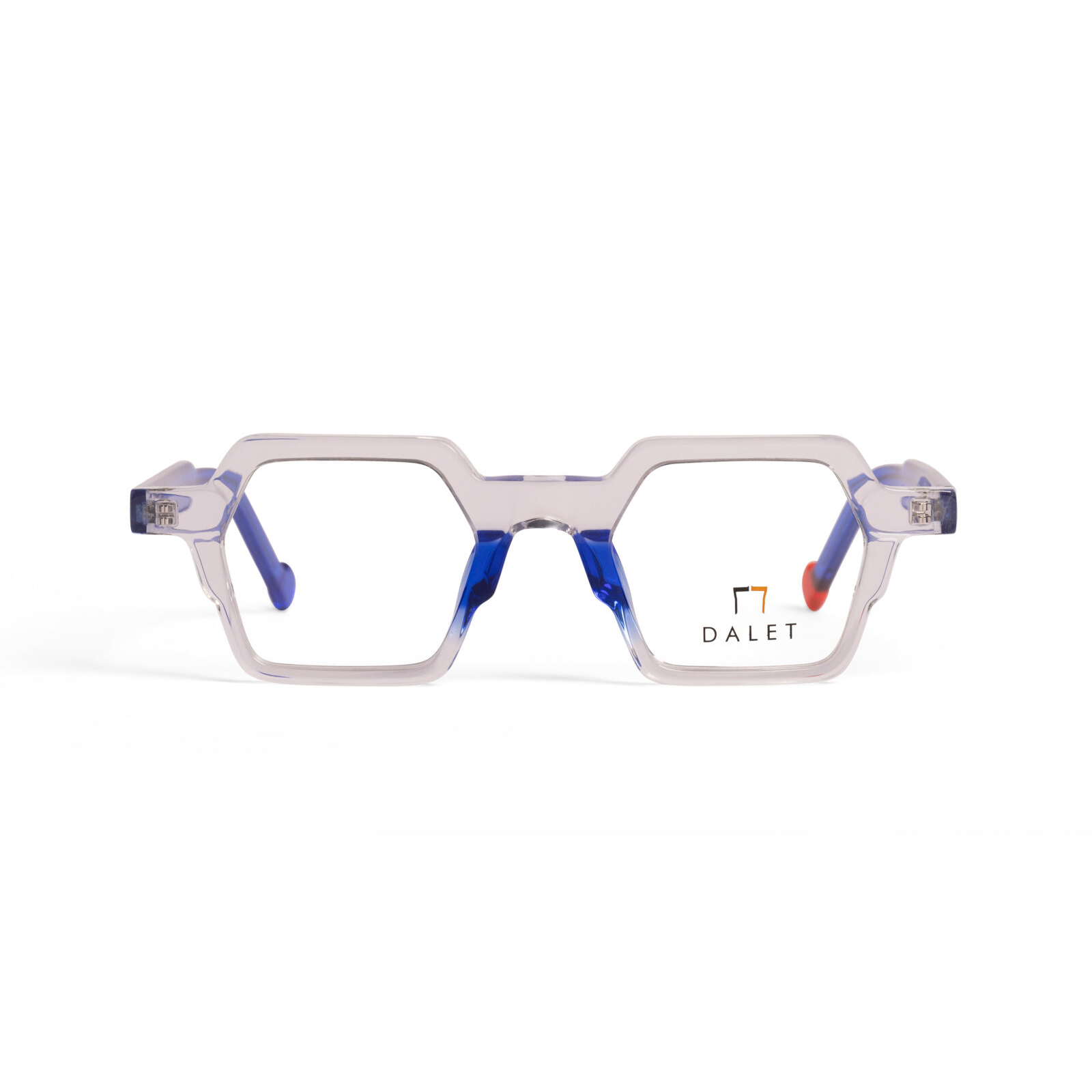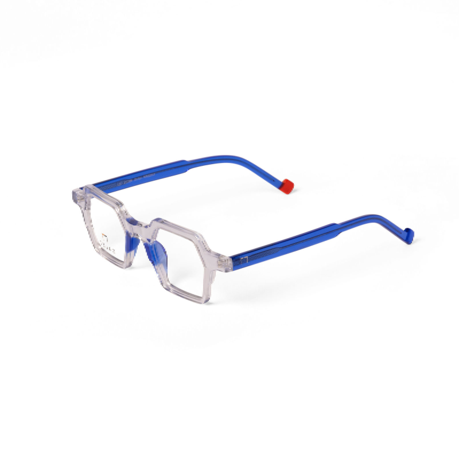 Occhiale in acetato trasparente con naselli blu