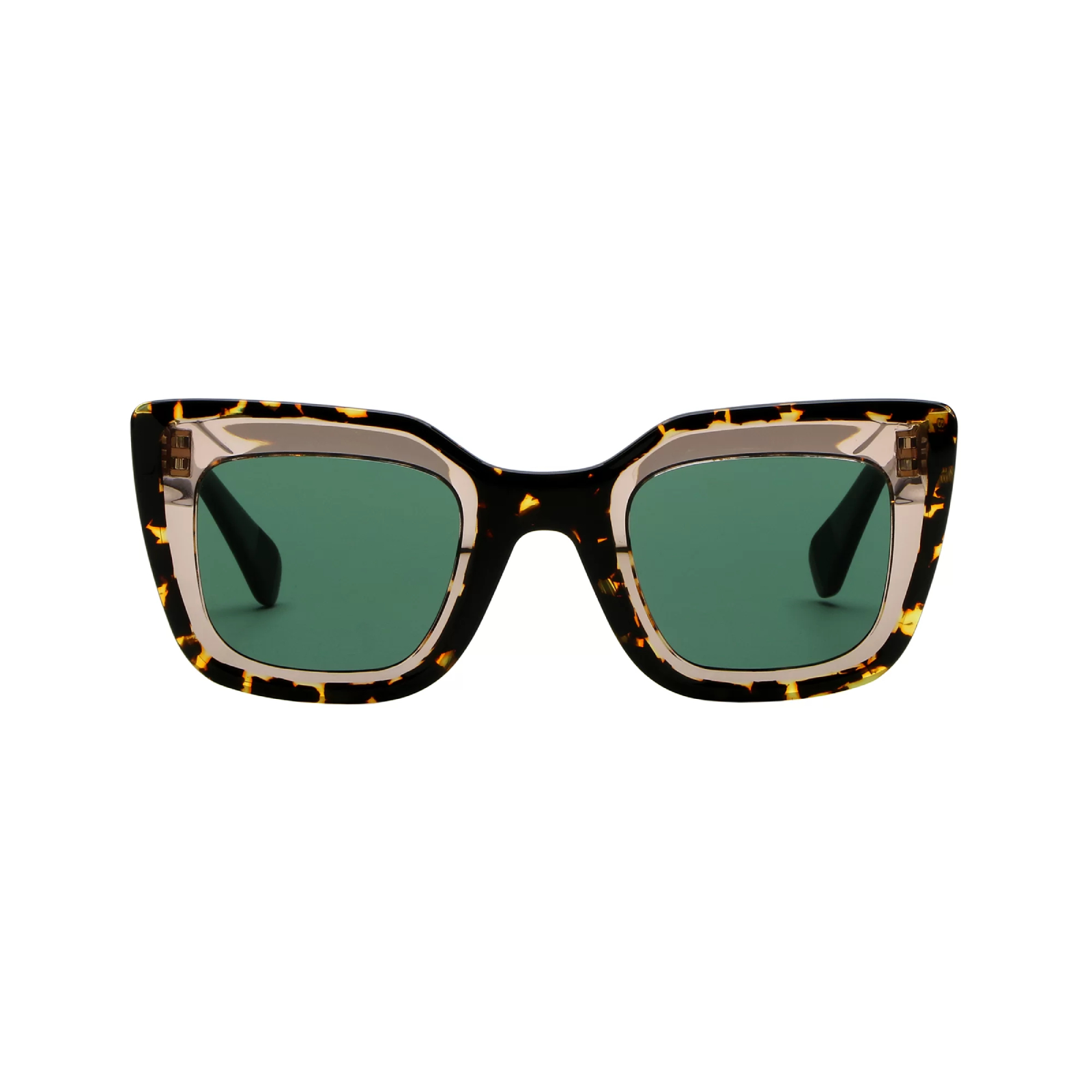 Occhiale squadrato in acetato con parte centrale del frontale trasparente